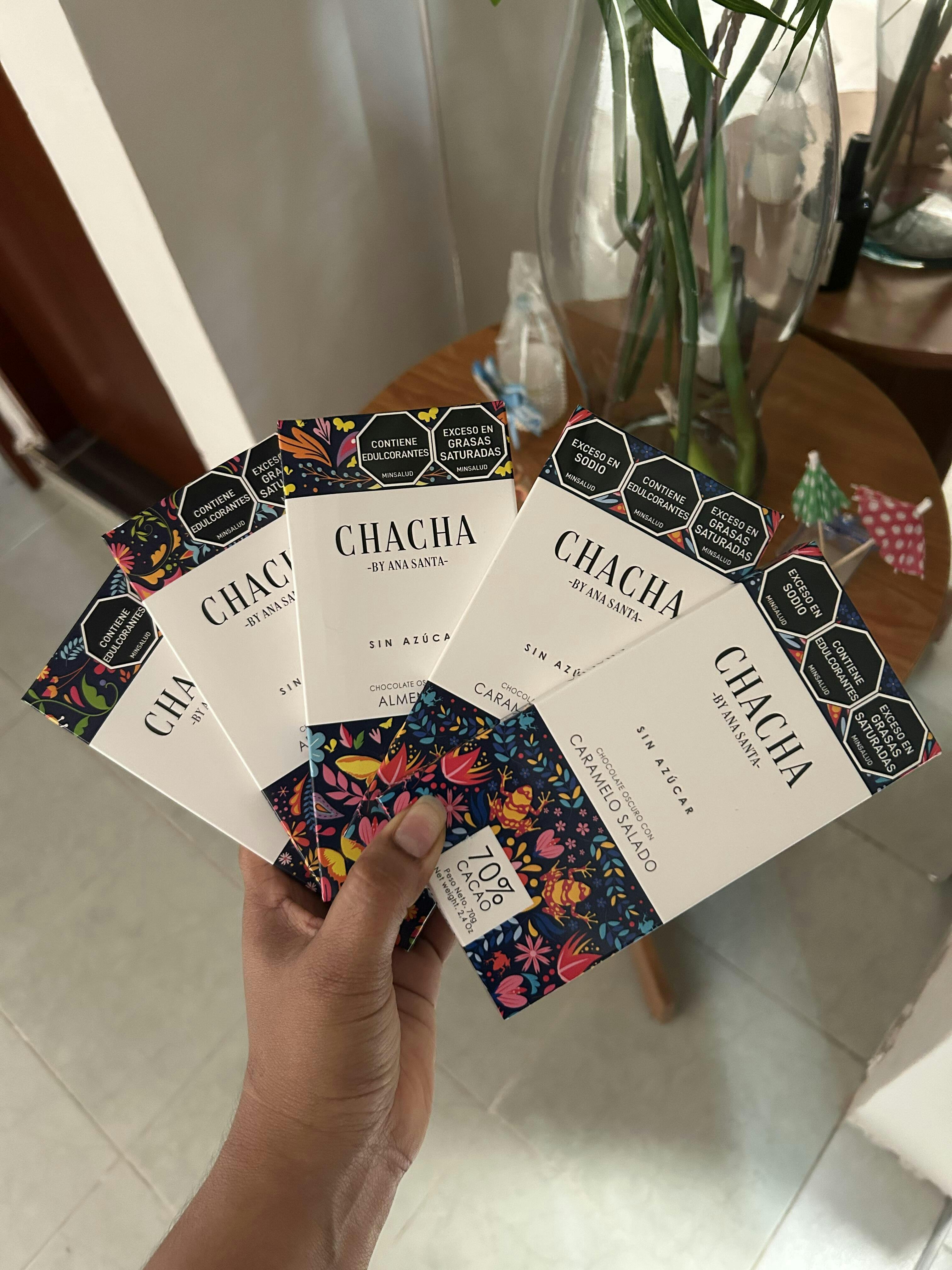 Chocolate al 70% cacao fino de aroma con sabor a caramelo y sal marina, sin azúcar, endulzado con stevia.